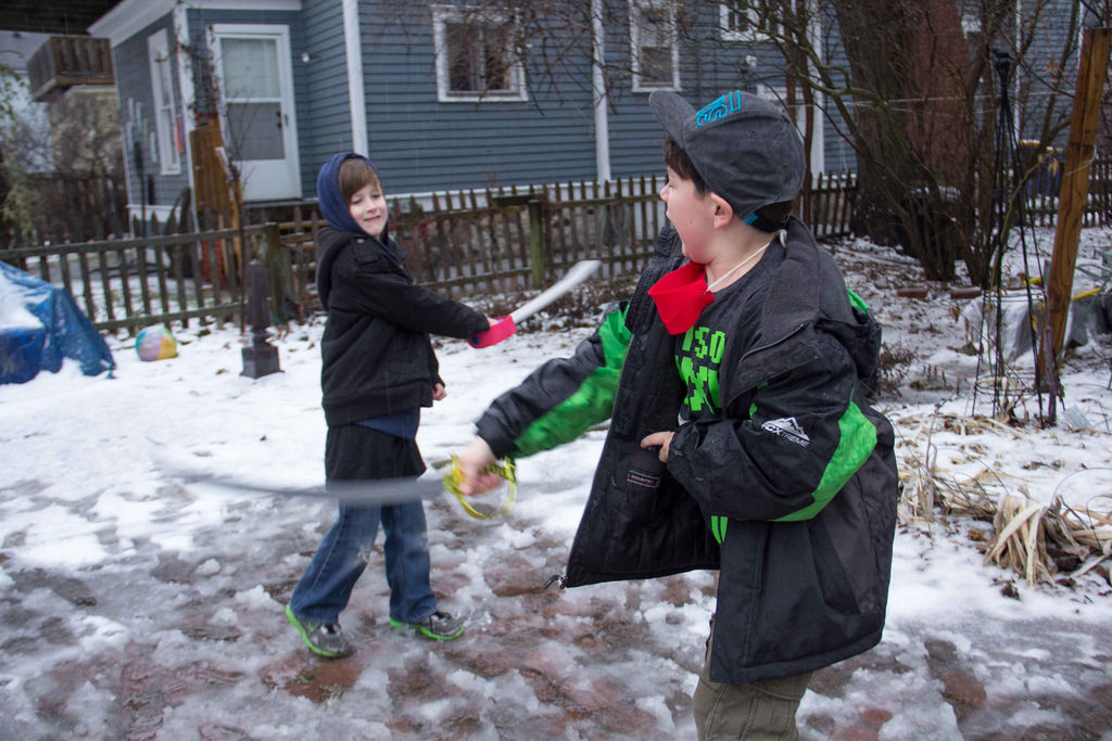 “I’ll get you now!!!!,” the child screams as he launches forward with his sword. Even if you don’t allow toys that look like weapons, Popsicle sticks start saying, “Bang, bang!,” sandwiches get bitten into gun shapes, and yard sticks become part of a young knight’s weaponry. What is going on? Should we worry that our sweet child will turn into a violent adult?