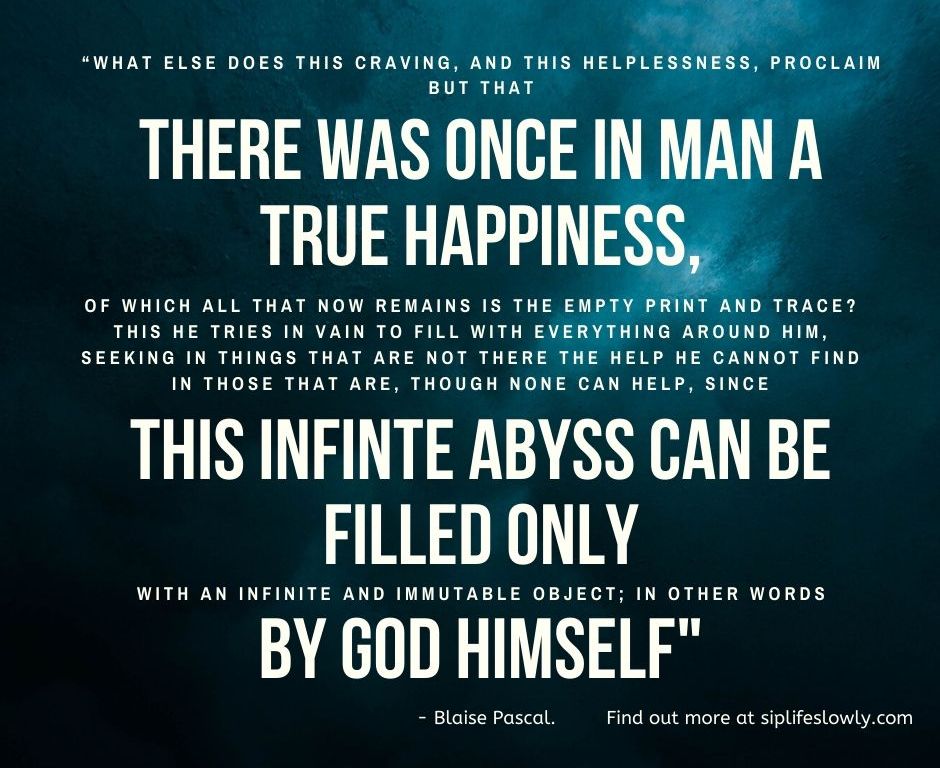 According to Blaise Pascal, there is an infinite happiness that was once in a man. It points to the One who alone can satisfy,