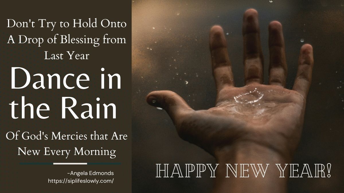 As this new morning of a new year dawns on you, no matter where you’ve been or what you’ve been through, I pray you will be able to dance in the rain. -To ask God for help to open up your heart and receive from God without shame and guilt the blessing He is showering upon you always.